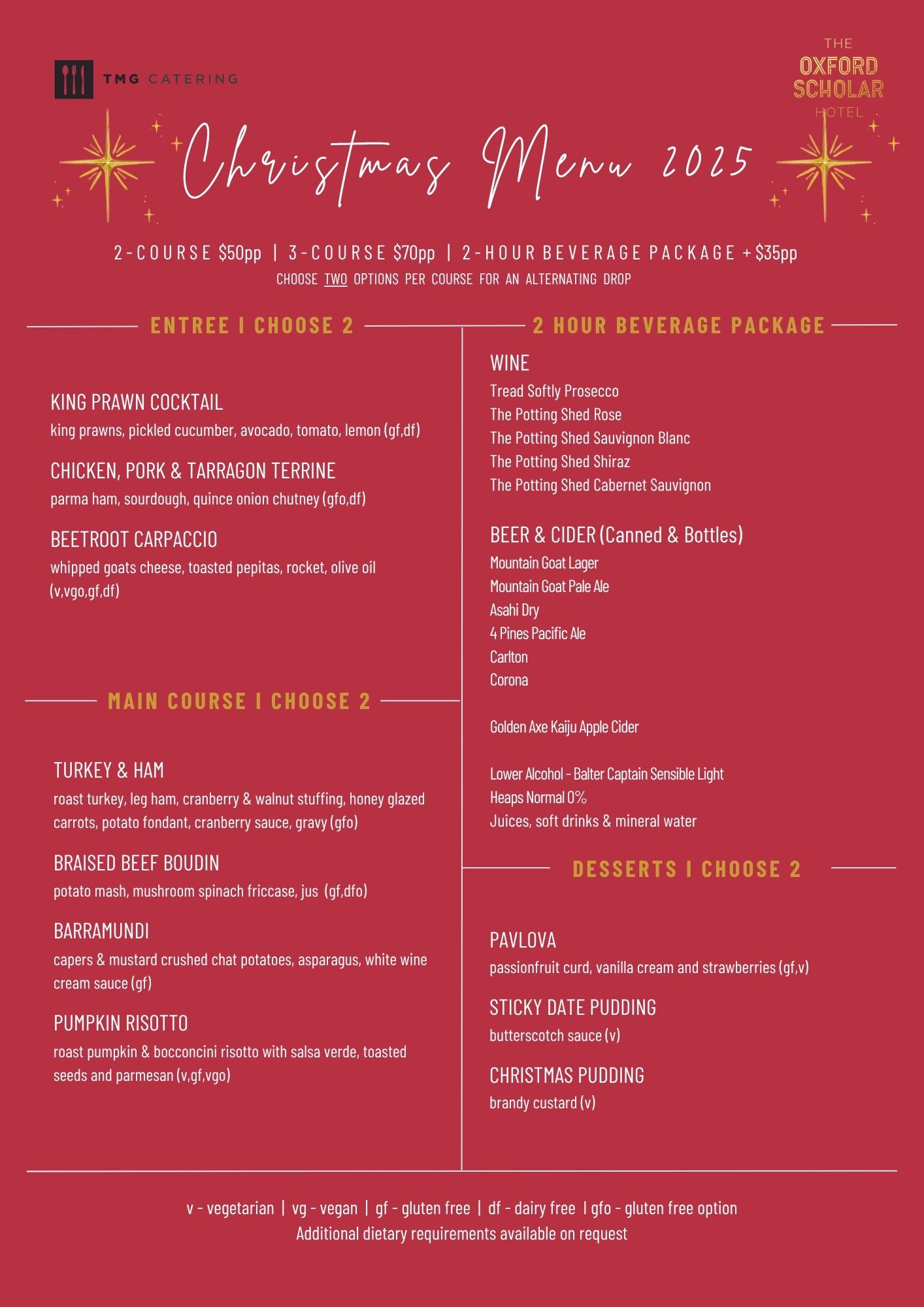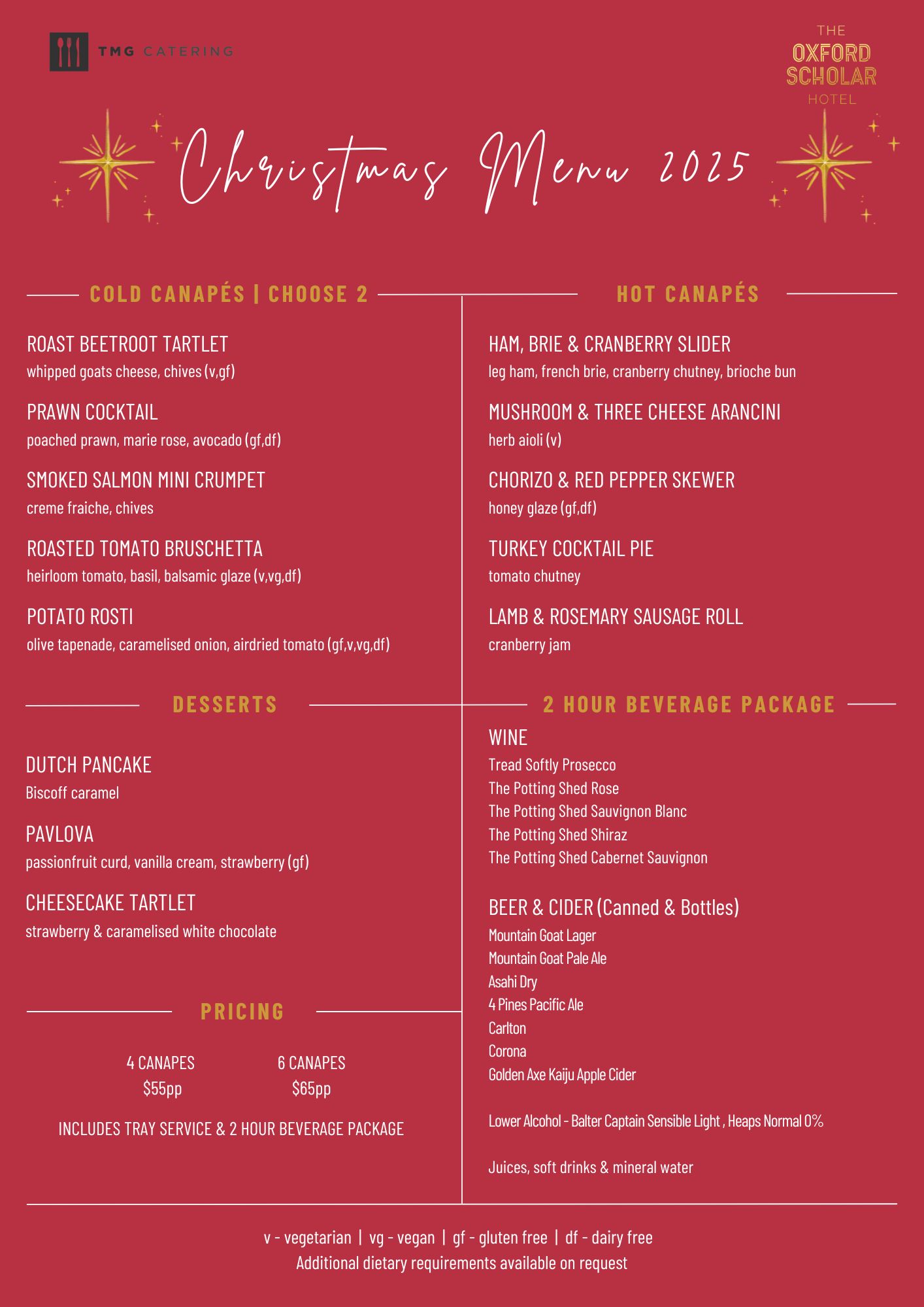 Contact the team for availability and a customised quote. Christmas menu is available from October 1st 2025 until December 31st 2025.